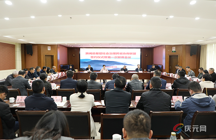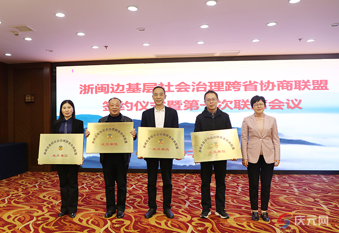 3月30日下午,浙闽边基层社会治理跨省协商联盟签约仪式暨第一次联席会议在庆元召开。本次活动由福建省松溪县政协、政和县政协、寿宁县政协和浙江省庆元县政协联合举办。